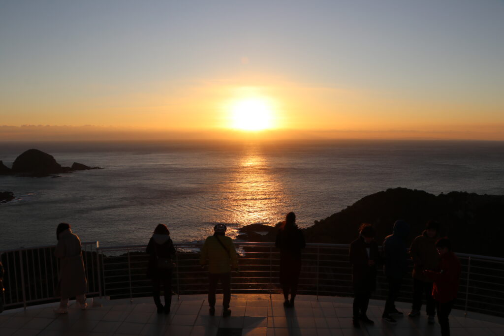 R8年1月1日佐多岬公園での初日の出拝賀については、佐多岬エントランスの駐車場が満車になることが想定されます。エントランス駐車場が満車になった場合は、第2駐車場で待機していただき午前5 時からシャトルバス(無料)でエントランスまで送迎する計画です。シャトルバスを運行させる場合は、上り最終が午前7時00分、下り最終が午前8時30分の予定です。
