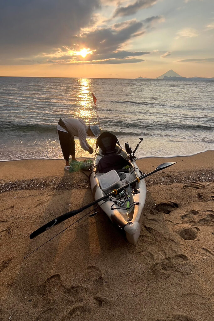 出先から調子の良かった今回の釣行では、短い時間だったのにも関わらず良い釣果に恵まれて、夕日を眺めながらゆったりとした時間にはなりませんでしたが、楽しいカヤックフィッシングの時間を過ごすことができました。黒潮の通り道に位置し、沖合水と沿岸水が混同する南大隅では、四季折々の様々な魚種を狙うことが可能で、釣行する度に「どんな大物が釣れるかわからない」という釣り人の血を熱く滾らせてくれる場所です。カヤックがなくても、遊漁船によるチャーター・乗合、瀬渡しなどもあり、自然豊かな南大隅町に一週間くらい滞在しながら「釣り旅」で訪れるには絶好の場所と言えます。ぜひ、南大隅を「釣り旅」の候補に加えてみてはいかがでしょうか。