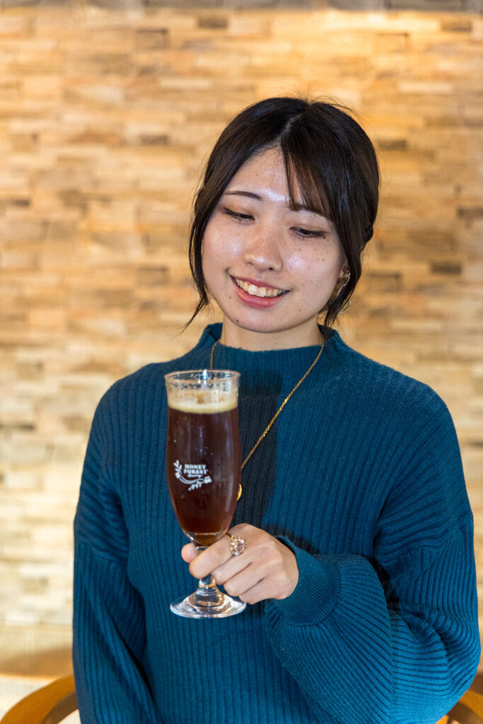 「他の4種類のビールと違って、辺塚だいだいの酸味を生かすために酵母を変えてるんです。アルコール度数も違います。」(相羽さん)